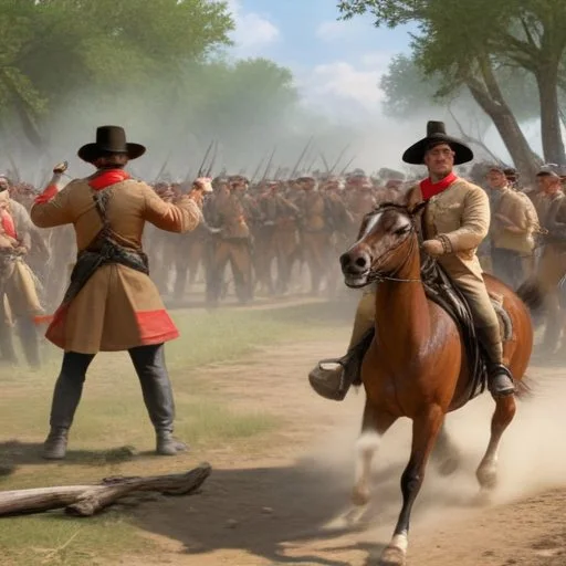 Sam Houston, the cunning commander of the Texan army, had been tracking down General Santa Anna's forces for weeks. On April 21, 1836, Houston's men ambushed the Mexicans near the San Jacinto River, catching them off guard. The Texans charged into battle, shouting "Remember the Alamo!" and quickly overwhelmed the Mexican forces. The battle was fierce but brief, lasting only 18 minutes, and ended with the capture of Santa Anna himself.
